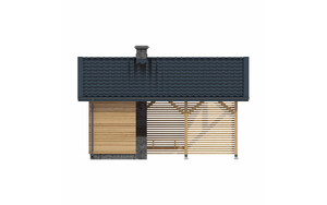 Altanka ogrodowa o nowoczesnej stylistyce z grillem, zapleczem do przygotowania posiłków i składzikiem na drewno. Prosta bryła, dwuspadowy dach czynią ją łatwą w budowie. Idealne miejsce odpoczynku, kulinarnych i towarzyskich spotkań.