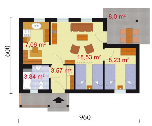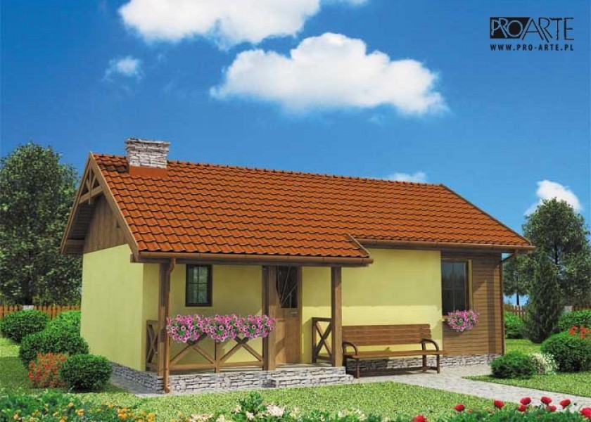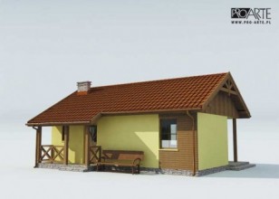 Projekt dostępny również jako CAŁOROCZNY!!!Zobacz czym różni się projekt domku letniskowego od domu całorocznego?FLORENCJA - dom letniskowyTen domek letniskowy, o prostej bryle, jest przeznaczony dla osób ceniących tradycyjne rozwiązania. Kąt nachylenia dachu pokrytego dachówką ceramiczną wynosi 30. Główne wejście do domku zostało umieszczone pod niewielkim zadaszeniem, które tworzy uroczy ganeczek. Florencja dzięki niemu zdaje się zapraszać nas do środka. Do pomieszczeń wewnątrz domu wchodzimy przez wiatrołap, łączący wszystkie pomieszczenia – w tym projekcie zrezygnowano bowiem z komunikacji, dzięki czemu zyskano więcej miejsca na pomieszczenia użytkowe. Do ścian południowej i zachodniej przylega obszerna łazienka z miejscem na wannę. Następnie mamy tutaj miejsce na urządzenie zamkniętej kuchni z bezpośrednim przejściem do pokoju dziennego, gdzie możemy spożywać przygotowane posiłki. Ponadto pokój dzienny został połączony z jedną sypialnią, druga sypialnia natomiast, została oddzielona od reszty domu i stanowi autonomiczny pokój. Na uwagę zasługuje fakt, iż z pokoju dziennego można wyjść na taras, który od wiosny do jesieni, może stać się także jadalnią. Jeżeli zdecydujemy się na całoroczną wersję projektu domku, posiłki będzie można spożywać także w pokoju dziennym, położonym w bezpośrednim sąsiedztwie kuchni. Sam taras natomiast możemy także wykorzystać jako miejsce zabaw dla dzieci lub też urządzić tutaj specjalne miejsce do grillowania, cieszącego się od pewnego czasu ogromną popularnością. Florencja posiada niewątpliwie jedną ogromną zaletę – dwie sypialnie, które nie stanowią standardowego rozwiązania, gdy chodzi o tego typu projekty. W takim domku wygodnie mogą wypoczywać nawet cztery osoby. Okazuje się, że prosta bryła budynku, pozwala na rozmieszczenie pomieszczeń w taki sposób, by zyskać jak najwięcej miejsca. Jeżeli szukasz ekonomicznego, funkcjonalnego, prostego domku letniskowego, to zapewne warto rozważyć właśnie tę propozycję.Projekt składa się z części architektonicznej, konstrukcyjnej, wewnętrznych instalacji wod.-kan, c. o. i elektrycznej. W projekcie załączone są podstawowe zestawienie stali, drewna i stolarki okienno-drzwiowej. Do projektu dołączamy bezpłatną zgodę na wprowadzenie zmian, oświadczenie projektantów o wykonaniu projektu zgodnie z obowiązującymi normami i przepisami oraz kserokopie uprawnień projektantów wraz z aktualnym wpisem do izby. W przypadku zamówienia projektu w technologii lekkiej, drewnianej konstrukcji szkieletowej, powierzchnia użytkowa budynku jest o około 7% większa.