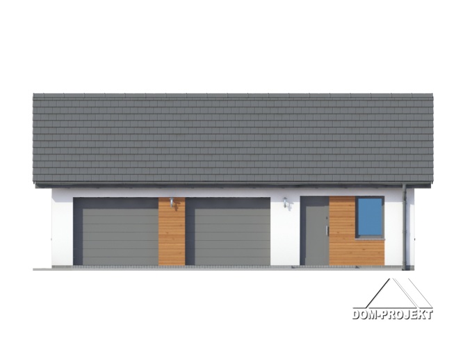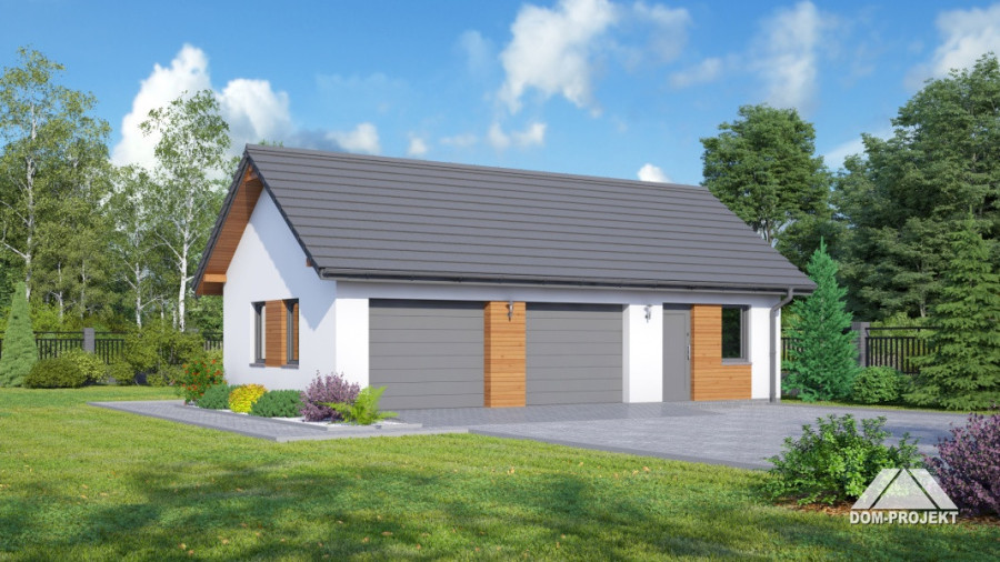 Garaż na dwa samochody z pomieszczeniem gospodarczym.