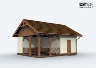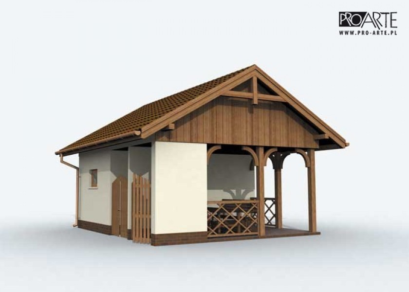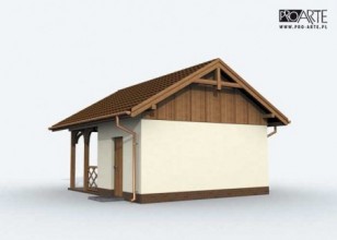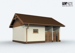 Budynek gospodarczy wolnostojący, parterowy z pomieszczeniem gospodarczym, werandą, składem na odpady i drewno kominkowe.Projekt składa się z czterech egzemplarzy a w tym części architektonicznej, konstrukcyjnej i instalacji wewnętrznej elektrycznej. W projekcie załączone są podstawowe zestawienie stali, drewna i stolarki okienno-drzwiowej. Do projektu dołączamy bezpłatną zgodę na wprowadzenie zmian, oświadczenie projektantów o wykonaniu projektu zgodnie z obowiązującymi normami i przepisami oraz kserokopie uprawnień projektantów wraz z aktualnym wpisem do izby.