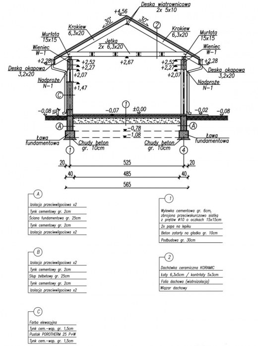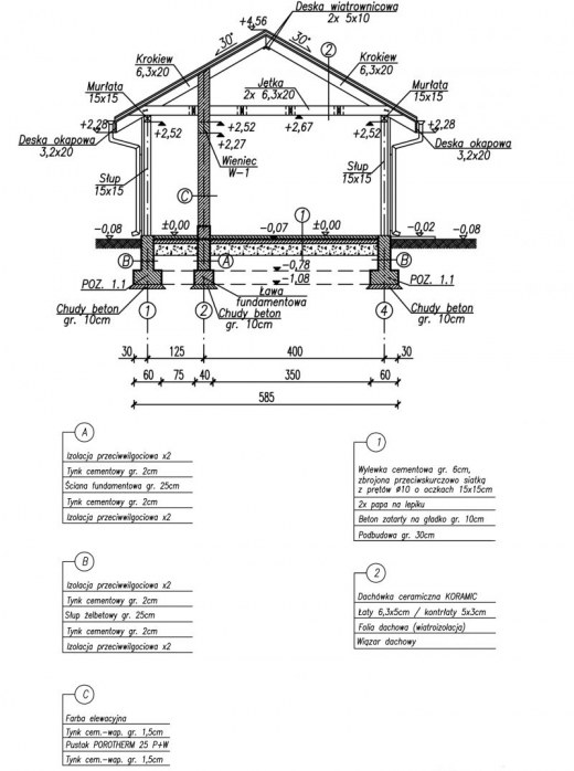 Projekt składa się z czterech egzemplarzy a w tym części architektonicznej, konstrukcyjnej i instalacji wewnętrznej elektrycznej. W projekcie załączone są podstawowe zestawienie stali, drewna i stolarki okienno-drzwiowej. Do projektu dołączamy bezpłatną zgodę na wprowadzenie zmian, oświadczenie projektantów o wykonaniu projektu zgodnie z obowiązującymi normami i przepisami oraz kserokopie uprawnień projektantów wraz z aktualnym wpisem do izby.