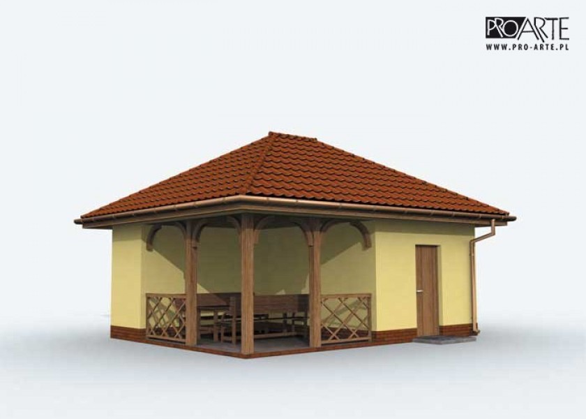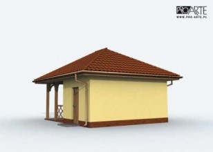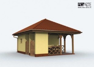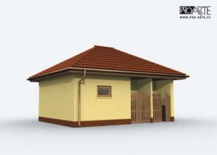 Budynek gospodarczy wolnostojący, parterowy z pomieszczeniem gospodarczym, werandą, składem na odpady i drewno kominkowe.Projekt składa się z czterech egzemplarzy a w tym części architektonicznej, konstrukcyjnej i instalacji wewnętrznej elektrycznej. W projekcie załączone są podstawowe zestawienie stali, drewna i stolarki okienno-drzwiowej. Do projektu dołączamy bezpłatną zgodę na wprowadzenie zmian, oświadczenie projektantów o wykonaniu projektu zgodnie z obowiązującymi normami i przepisami oraz kserokopie uprawnień projektantów wraz z aktualnym wpisem do izby.
