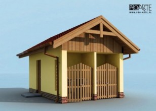 Budynek gospodarczy w technologii szkieletowej, wolnostojący, parterowy bez bramy. Budynek posiada dodatkowe pomieszczenie skład na drewno i odpady.Zobacz budynek w wersjii murowanej.Projekt garażu składa się z czterech egzemplarzy a w tym części architektonicznej, konstrukcyjnej i instalacji wewnętrznej elektrycznej. W projekcie załączone są podstawowe zestawienie stali, drewna i stolarki okienno-drzwiowej. Do projektu dołączamy bezpłatną zgodę na wprowadzenie zmian, oświadczenie projektantów o wykonaniu projektu zgodnie z obowiązującymi normami i przepisami oraz kserokopie uprawnień projektantów wraz z aktualnym wpisem do izby.
