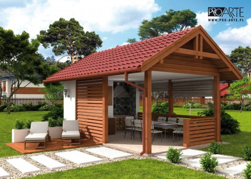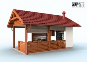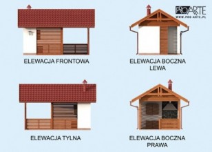G332 - budynek wiaty rekreacyjnej z grillowędzarnikiemProjekt składa się z czterech egzemplarzy a w tym części architektonicznej, konstrukcyjnej i instalacji wewnętrznej elektrycznej. W projekcie załączone są podstawowe zestawienie stali, drewna i stolarki okienno-drzwiowej. Do projektu dołączamy bezpłatną zgodę na wprowadzenie zmian, oświadczenie projektantów o wykonaniu projektu zgodnie z obowiązującymi normami i przepisami oraz kserokopie uprawnień projektantów wraz z aktualnym wpisem do izby.