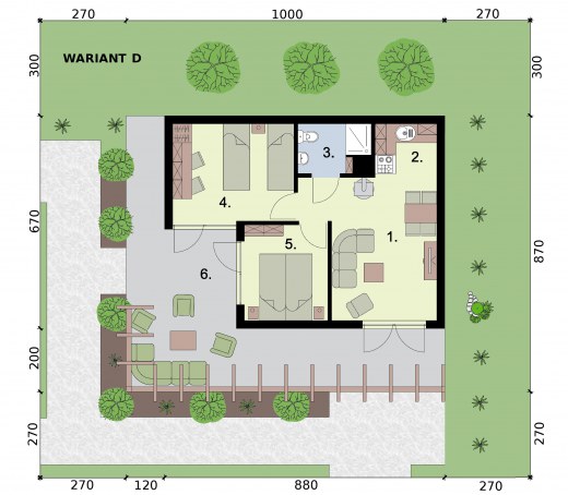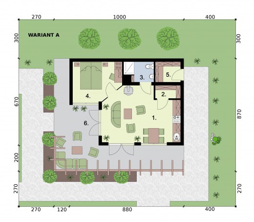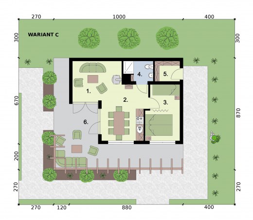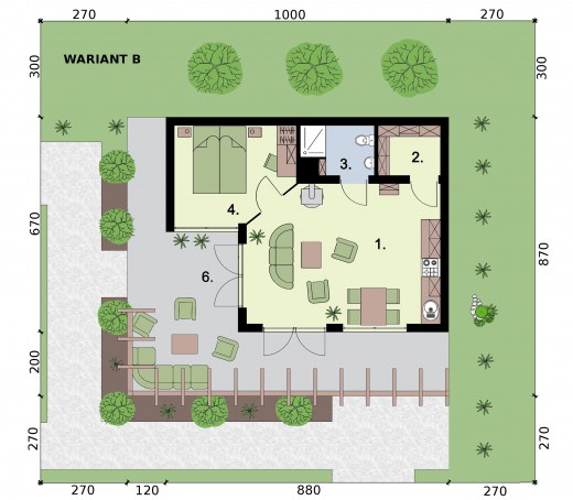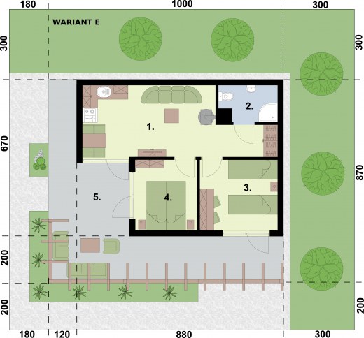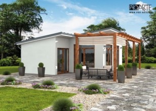 GRENADA - dom letniskowyZobacz czym różni się projekt domku letniskowego od domu całorocznego? Zobacz projekt GRENADA jako kuchnię letnią.Marzysz o domu letniskowym w zacisznej wypoczynkowej miejscowości? Może Grenada to właśnie ten wymarzony domek, który pokochasz Ty i Twoi bliscy?Salon z aneksem kuchennym, część sypialna, łazienka, garderoba oraz pomieszczenie gospodarcze tworzą dopasowaną do Twoich potrzeb przestrzeń do wypoczynku i cieszenia się życiem. Projekt dostępny w 4 wariantach aranżacji wnętrzaOczywiście w zależności od potrzeby (np. gdy powiększy Ci się rodzina) możesz go modyfikować już po wybudowaniu. Ten dom to wymarzone rozwiązanie dla par i rodzin a także Inwestorów chcących prowadzić działalność turystyczną, i oferować wynajem obiektu. Wariant A - dla dwojga kochających ogród i ładSkłada się na niego przestronny salon z kominkiem, część sypialna, jadalnia z aneksem kuchennym, z niewielkim pomieszczeniem pomocniczym, łazienka i pomieszczenie gospodarcze z wejściem od zewnątrz. Przestrzeń w tym wariancie zagospodarowana jest tak, jakby przeznaczona była minimum dla dwojga osób. Pomieszczenie gospodarcze może pełnić wiele funkcji, być składem na drewno, może służyć przechowywaniu narzędzi ogrodowych a nawet zimowaniu roślin.Wariant B - dla ceniących funkcjonalność domuPomieszczenie pomocnicze mogące służyć za garderobę, spiżarnię, czy inne sprawia, że nie ma potrzeby magazynowania żywności, czy innych przedmiotów wyłącznie w salonie z aneksem kuchennym lub sypialni. Lubisz ład? To wariant dla Ciebie.Wariant C - dla 2 + Przepierzenie w sypialni dziele na pół część nocną sypialnię przeznaczoną np. dla rodziców i za ścianką część dla dzieci. Aby pomieścić większą liczbę gości można wstawić łóżko piętrowe, do wykorzystania jest też sofa w salonie Pokój dzienny, kuchnia z jadalnią, łazienka oraz część nocna tworzą przekonującą swoim zaaranżowaniem całość.Wariant D - 5+ do turystyki i dla rodzinW tym wariancie uzyskujemy największą przestrzeń sypialną, przy piętrowych łóżkach może to być nawet 8 osób na niespełna 20 m2. Powiększony salon z aneksem kuchennym, którego centralnym miejscem jest kominek sprzyja integracji.Jest to świetne rozwiązanie dla inwestorów chcących z Grenady zrobić domek letniskowy pod wynajem lub przeznaczony dla większych rodzin. Przesunięciu uległy drzwi tarasowem, można nimi wchodzić właśnie od strony salonu.Wariant E - 5+ do turystyki i dla rodzin z powiększonym salonem i kuchniąW tym wariancie uzyskujemy największą przestrzeń sypialną, przy piętrowych łóżkach może to być nawet 8 osób na niespełna 20 m2. Powiększony salon z aneksem kuchennym, którego centralnym miejscem jest kominek sprzyja integracji i umożliwia biesiadowanie oraz spotkania. Jest to świetne rozwiązanie dla inwestorów chcących z Grenady zrobić domek letniskowy pod wynajem lub przeznaczony dla większych rodzin. Przesunięciu uległy drzwi tarasowem, można nimi wchodzić właśnie od strony salonu.Projekt składa się z części architektonicznej, konstrukcyjnej, wewnętrznych instalacji wod.-kan, c. o. i elektrycznej. W projekcie załączone są podstawowe zestawienie stali, drewna i stolarki okienno-drzwiowej. Do projektu dołączamy bezpłatną zgodę na wprowadzenie zmian, oświadczenie projektantów o wykonaniu projektu zgodnie z obowiązującymi normami i przepisami oraz kserokopie uprawnień projektantów wraz z aktualnym wpisem do izby.