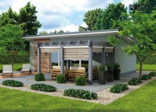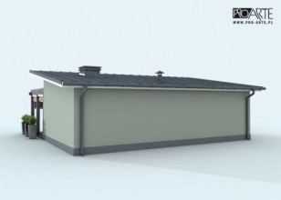 KL11 kuchnia letnia z WC i pomieszczeniem pomocniczym.W przypadku ubiegania się o pozwolenie na budowę projekt nosi nazwą budynku gospodarczego. W części opisowej projektu znajduje się pomieszczenie gospodarcze z funkcjami aneksu kuchennego.Zobacz KL11 jako domek letniskowyProjekt składa się z części architektonicznej, konstrukcyjnej, wewnętrznej instalacji elektrycznej i sanitarnej. W projekcie załączone są podstawowe zestawienie stali, drewna i stolarki okienno-drzwiowej. Do projektu dołączamy bezpłatną zgodę na wprowadzenie zmian, oświadczenie projektantów o wykonaniu projektu zgodnie z obowiązującymi normami i przepisami oraz kserokopie uprawnień projektantów wraz z aktualnym wpisem do izby. W przypadku zamówienia projektu w technologii lekkiej, drewnianej konstrukcji szkieletowej, powierzchnia użytkowa budynku jest o około 7% większa.