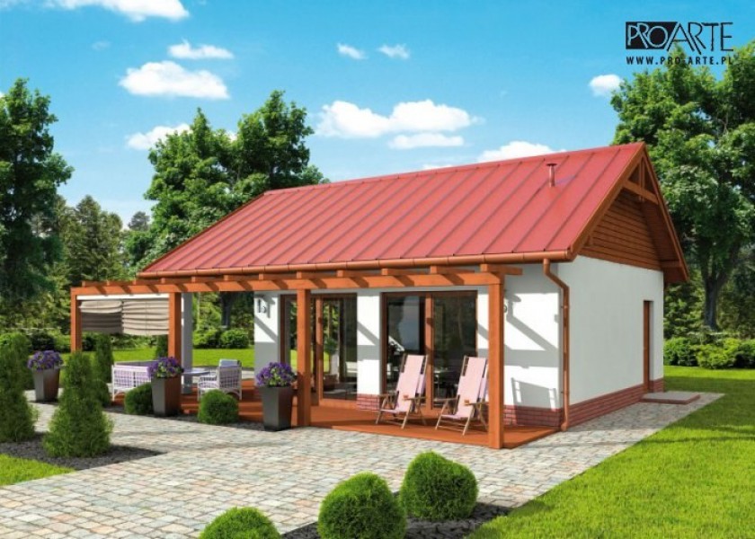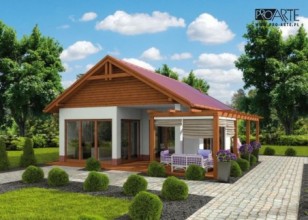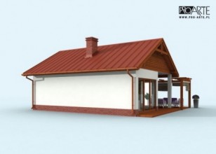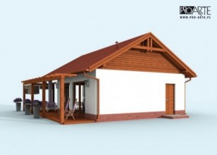 KL12kuchnia letnia z pom. gospodarczym, WC, oranżerią i tarasem W przypadku ubiegania się o pozwolenie na budowę projekt nosi nazwą budynku gospodarczego. W części opisowej projektu znajduje się pomieszczenie gospodarcze z funkcjami aneksu kuchennego.Projekt składa się z części architektonicznej, konstrukcyjnej, wewnętrznej instalacji elektrycznej i sanitarnej. W projekcie załączone są podstawowe zestawienie stali, drewna i stolarki okienno-drzwiowej. Do projektu dołączamy bezpłatną zgodę na wprowadzenie zmian, oświadczenie projektantów o wykonaniu projektu zgodnie z obowiązującymi normami i przepisami oraz kserokopie uprawnień projektantów wraz z aktualnym wpisem do izby. W przypadku zamówienia projektu w technologii lekkiej, drewnianej konstrukcji szkieletowej, powierzchnia użytkowa budynku jest o około 7% większa.