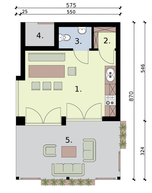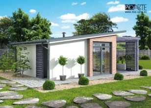 KL2 kuchnia letnia ze spiżarnią, WC, składem na drewno i werandąW przypadku ubiegania się o pozwolenie na budowę projekt nosi nazwą budynku gospodarczego. W części opisowej projektu znajduje się pomieszczenie gospodarcze z funkcjami aneksu kuchennego. Drugi projekt kuchni letniej naszego autorstwa to propozycja kompleksowa. Oprócz biesiadziska ogrodowego znajdziemy w nim spiżarnię, skład na drewno oraz, co niezwykle ważne - toaletę. Obszerna weranda pomieści wszystkich Twoich gości. W doborowym towarzystwie będziesz mógł się w pełni cieszyć urokami imprezy pod chmurką a gdy tylko zechcesz możesz przenieść się do wnętrza. Kuchnia letnia to znakomita alternatywa dla organizacji imprez rodzinnych w restauracjach, z kuchnią zaoszczędzisz i co istotne już nie musisz się martwić się o brak miejsca w salonie.Teraz kuchnia letnia z werandą i biesiadziskiem to Twój nowy salon, który angażuje znacznie mniej sił do przygotowania go na wizytę gości. Wszystko masz na miejscu. Koniec z uciążliwym sprzątaniem całego domu i szorowaniem łazienek przed i po wizycie gości. Po skończonej imprezie idziesz spać a porządek w kuchni zrobisz w mig - dopiero, gdy wypoczniesz. Jak Wam się podoba?Projekt składa się z części architektonicznej, konstrukcyjnej, wewnętrznej instalacji elektrycznej i sanitarnej. W projekcie załączone są podstawowe zestawienie stali, drewna i stolarki okienno-drzwiowej. Do projektu dołączamy bezpłatną zgodę na wprowadzenie zmian, oświadczenie projektantów o wykonaniu projektu zgodnie z obowiązującymi normami i przepisami oraz kserokopie uprawnień projektantów wraz z aktualnym wpisem do izby. W przypadku zamówienia projektu w technologii lekkiej, drewnianej konstrukcji szkieletowej, powierzchnia użytkowa budynku jest o około 7% większa.