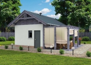 KL7 kuchnia letniaz pom. gospodarczym, WC i tarasem W przypadku ubiegania się o pozwolenie na budowę projekt nosi nazwą budynku gospodarczego. W części opisowej projektu znajduje się pomieszczenie gospodarcze z funkcjami aneksu kuchennego.Zobacz projekt w wesji domu letniskowego.PEŁNA KOLEKCJA KUCHNI LETNICHProjekt składa się z części architektonicznej, konstrukcyjnej, wewnętrznej instalacji elektrycznej i sanitarnej. W projekcie załączone są podstawowe zestawienie stali, drewna i stolarki okienno-drzwiowej. Do projektu dołączamy bezpłatną zgodę na wprowadzenie zmian, oświadczenie projektantów o wykonaniu projektu zgodnie z obowiązującymi normami i przepisami oraz kserokopie uprawnień projektantów wraz z aktualnym wpisem do izby. W przypadku zamówienia projektu w technologii lekkiej, drewnianej konstrukcji szkieletowej, powierzchnia użytkowa budynku jest o około 7% większa.