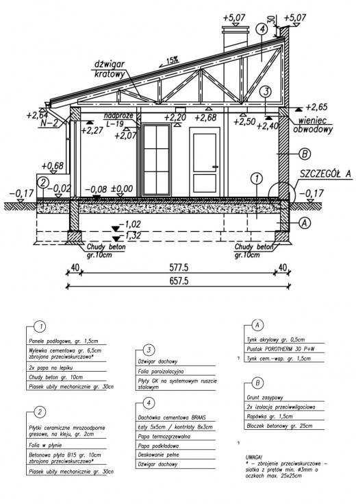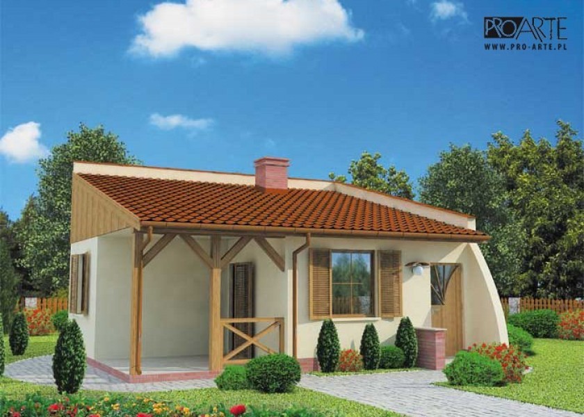 LUBLANA - dom letniskowy Zobacz czym różni się projekt domku letniskowego od domu całorocznego? Specyfika tego domku tkwi w jego tylnej i prawej bocznej elewacji, ponieważ ściany te dają wrażenie, że Lublana została otoczona murem, który ma zadbać o bezpieczeństwo jej mieszkańców. Płotek kratowy umieszczony na bocznej ścianie przyozdabia prawą elewacje subtelnym motywem kwiatowym. Spoglądając od frontu na tę samą ścianę zauważymy, że wychodzi ona poza horyzont linii domku przybierając delikatnie zaokrąglonych kształtów na jej pionowej krawędzi.Warto również zwrócić uwagę na jednospadowy dach lekko pochylony ku przodowi budynku nadając mu wyjątkowej charyzmy i niepowtarzalnego charakteru. Kolejnym plusem jest weranda, która sprawi, że rodzinne przesiadywanie blisko natury oraz z wszelkimi udogodnieniami w zasięgu ręki stanie się najcudowniejszym sposobem spędzania czasu, bez troski o to, ze czegoś zabraknie. Wyżej wspomniane udogodnienia to sypialnia, łazienka oraz pokój dzienny z kuchnią bez których po prostu nie można się obejść! Wszystko to znajdą Państwo w projekcie Lublana.Zobacz projekt Lublana 2 bliźniakProjekt składa się z części architektonicznej, konstrukcyjnej, wewnętrznych instalacji sanitarnych i instalacji elektrycznej. W projekcie załączone są podstawowe zestawienie stali, drewna i stolarki okienno-drzwiowej. Do projektu dołączamy bezpłatną zgodę na wprowadzenie zmian, oświadczenie projektantów o wykonaniu projektu zgodnie z obowiązującymi normami i przepisami oraz kserokopie uprawnień projektantów wraz z aktualnym wpisem do izby. W przypadku zamówienia projektu w technologii lekkiej, drewnianej konstrukcji szkieletowej, powierzchnia użytkowa budynku jest o około 7% większa.