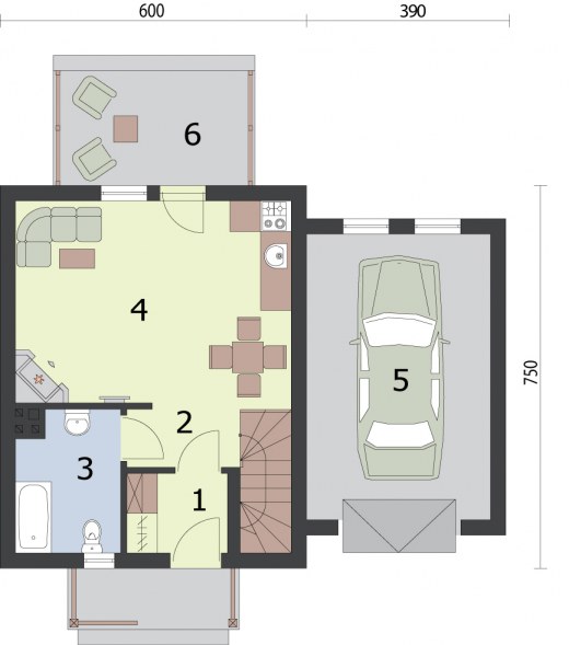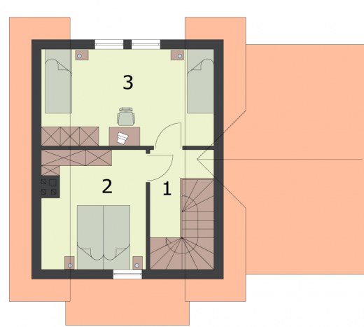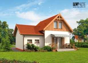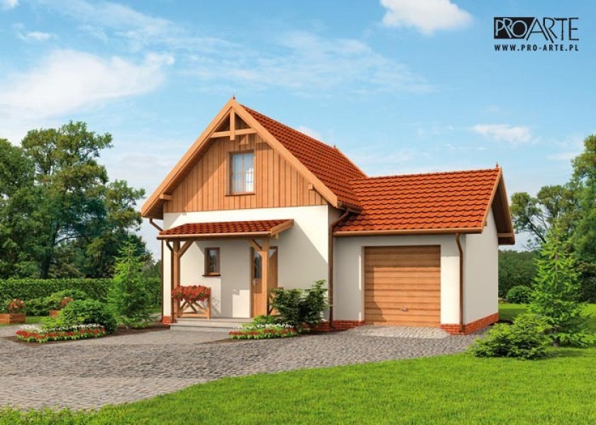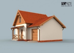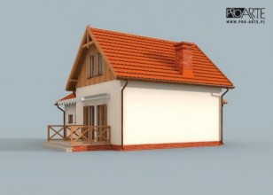 Projekt dostępny również jako CAŁOROCZNY!!! Zobacz czym różni się projekt domku letniskowego od domu całorocznego?OKLAHOMA 2 - dom letniskowy Oklahoma wyróżnia się indywidualnym charakterem, to przykład rasowego, praktycznego budownictwa: jednopiętrowy dom oraz garaż stanowią świetnie komponującą się całość, mogącą zadowolić niejednego Inwestora. Gustowne elewacje, dachówka, cokolik i elementy drewniane są tylko zapowiedzią dla racjonalnie zaplanowanych wnętrz. Piękno zewnętrzne i wewnętrzne uporządkowanie będą ważnym argumentem dla tych z Inwestorów, którzy widzieliby w nim ciepły, przyjazny dom letniskowy dla rodzin i nie tylko. Zadaszona weranda wiedzie do środka, w wiatrołapie znajdziemy miejsce na szafę pod zabudowę.Zaś po wyjściu z niego, po lewej usytuowano w pełni wyposażoną łazienkę, natomiast po prawej schody wiodące na piętro. Na wprost od komunikacji widoczny jest dwufunkcyjny pokój dzienny z kominkiem oraz aneksem kuchennym. Z tego przestronnego pokoju można wyjść na taras. Jest on dużym udogodnieniem i niewątpliwą zaletą mogącą przekonać tych, którzy cenią biesiady oraz celebrowanie wspólnych posiłków na świeżym powietrzu. Na piętrze znajdują się dwie dość obszerne sypialnie, doświetlone przez znajdujące się na ich południowych i północnych ścianach okna. Garaż będzie bezpiecznym i komfortowym miejscem, w którym zmieści się jeden pojazd średniej lub dużej wielkości.Zobacz projekt Oklahoma bez garażu.Projekt składa się z części architektonicznej, konstrukcyjnej, wewnętrznych instalacji wod.-kan, c. o. i elektrycznej. W projekcie załączone są podstawowe zestawienie stali, drewna i stolarki okienno-drzwiowej. Do projektu dołączamy bezpłatną zgodę na wprowadzenie zmian, oświadczenie projektantów o wykonaniu projektu zgodnie z obowiązującymi normami i przepisami oraz kserokopie uprawnień projektantów wraz z aktualnym wpisem do izby. W przypadku zamówienia projektu w technologii lekkiej, drewnianej konstrukcji szkieletowej, powierzchnia użytkowa budynku jest o około 7% większa