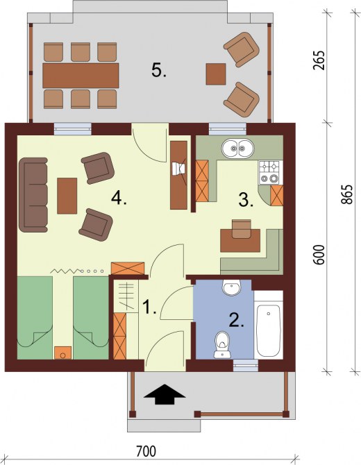 RIOBAMBA- dom letniskowyZobacz czym różni się projekt domku letniskowego od domu całorocznego?Wygodny i efektowny domek, wymarzony na urlop czy letnie weekendowe wypady. Riobamba przyciąga uwagę elegancka prostotą - wszelkie rozwiązania architektoniczne i elementy wykończeniowe zestawiono tu z ogromnym wyczuciem smaku. Bardzo efektownie prezentuje się tylna elewacja - wytworna i gustowna w każdym szczególe - od wysmukłych okien, przeszklonych drzwi, przez lśniącą posadzkę tarasu, po efektownie wyprofilowany murek otaczający go.Wnętrze domku wyróżnia się ciekawym układem: funkcjonalny i praktyczny pokój dzienny połączono tu z aneksem sypialnym, z kolei w kuchni, która jest samodzielnym pomieszczeniem, zaplanowano kącik jadalny. Całości dopełnia łazienka oraz komunikacja z garderobą.Zobacz projekt domu letniskowego RIOBAMBA 2 bliźniak Projekt składa się z części architektonicznej, konstrukcyjnej, wewnętrznych instalacji wod.-kan, c. o. i elektrycznej. W projekcie załączone są podstawowe zestawienie stali, drewna i stolarki okienno-drzwiowej. Do projektu dołączamy bezpłatną zgodę na wprowadzenie zmian, oświadczenie projektantów o wykonaniu projektu zgodnie z obowiązującymi normami i przepisami oraz kserokopie uprawnień projektantów wraz z aktualnym wpisem do izby. W przypadku zamówienia projektu w technologii lekkiej, drewnianej konstrukcji szkieletowej, powierzchnia użytkowa budynku jest o około 7% większa.Zapytaj o możliwość adaptacji projektu do wersji całorocznej.