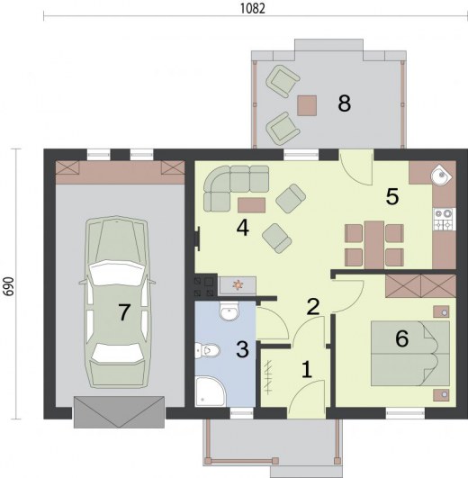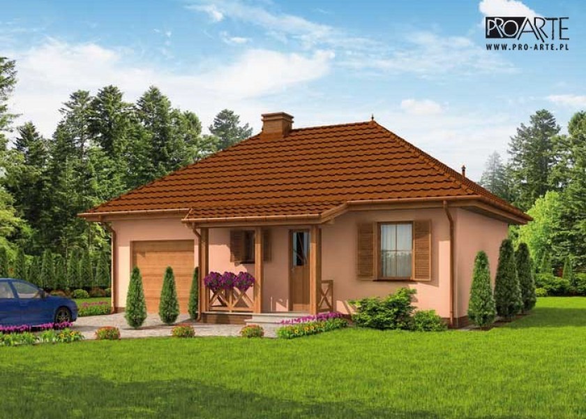 Projekt dostępny również jako CAŁOROCZNY!!! Zobacz czym różni się projekt domku letniskowego od domu całorocznego? ANDALUZJA - dom letniskowyPrzemyślane, pełne czaru dzieło architektoniczne jakim jest Andaluzja będzie wyborem dla wszystkich żądających kompleksowych i praktycznych rozwiązań. Od frontu budynku znajduje się zadaszony ganek, po którego lewej stronie usytuowany jest wjazd do garażu. Na załączonej wizualizacji świetnie widać, jak z gustem i harmonijnie dobrać kolor ścian, zestawić dachówkę z cokolikiem oraz uzupełnić całość elementami drewnianymi, takimi jak okiennice. Przyjazny i ciepły charakter elewacji jest tylko zapowiedzią przytulnych oraz komfortowych wnętrz. Weranda wiedzie do wiatrołapu, z którego przechodzi się do komunikacji. Po lewej stronie znajduje się łazienka, natomiast po prawej stronie komunikacji jest dość obszerna sypialnia. Od komunikacji na wprost usytuowany jest pokój dzienny z aneksem kuchennym, w którym znajduje się kominek. Jest to miejsce, które z pewnością w zimowe wieczory będzie skupiać życie wypoczywających w domu ludzi. Letnie dni będzie można spędzać w biesiadnej atmosferze, przy grillu na tarasie. Garaż, kuchnia, łazienka, sypialnia, pokój dzienny, to pomieszczenia składające się na Andaluzję. Od teraz ta nazwa będzie się Wam niezmiennie kojarzyć ciepłym, urzekającym domem, zaprojektowanym z myślą o realizacji Waszych marzeń.Projekt składa się z części architektonicznej, konstrukcyjnej, wewnętrznych instalacji wod.-kan, c. o. i elektrycznej. W projekcie załączone są podstawowe zestawienie stali, drewna i stolarki okienno-drzwiowej. Do projektu dołączamy bezpłatną zgodę na wprowadzenie zmian, oświadczenie projektantów o wykonaniu projektu zgodnie z obowiązującymi normami i przepisami oraz kserokopie uprawnień projektantów wraz z aktualnym wpisem do izby. W przypadku zamówienia projektu w technologii lekkiej, drewnianej konstrukcji szkieletowej, powierzchnia użytkowa budynku jest o około 7% większa.