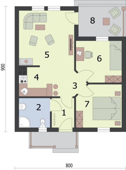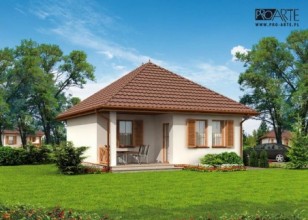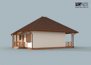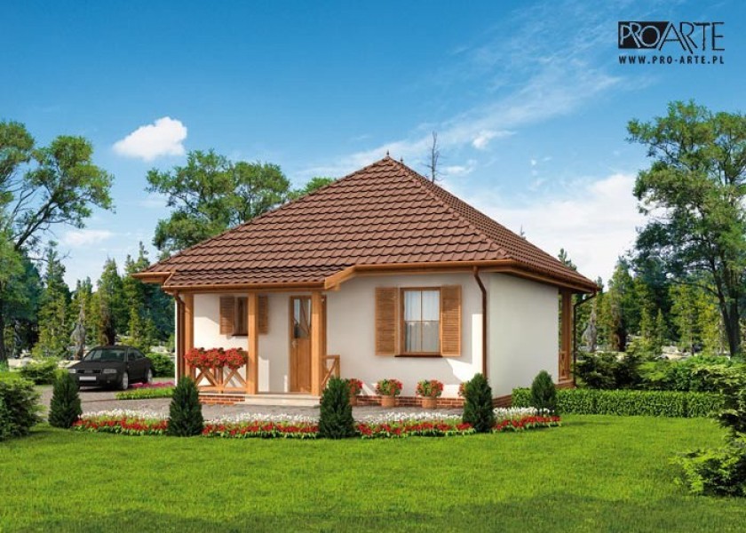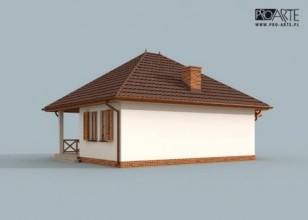 Projekt dostępny również jako CAŁOROCZNY!!! Zobacz czym różni się projekt domku letniskowego od domu całorocznego?SAN ANTONIO - dom letniskowyBryła budynku łączy sobą nowoczesność z tradycją. Ten projekt robi świetne wrażenie i przypada do gustu każdemu, kogo wyróżnia zmysł smaku i stylu. San Antonio to projekt, w którym ważne są wszystkie detale, elegancki, stonowany - bez zbędnych udziwnień, pełen spokojnego uroku. Zadaszone wejście, płynnie połączone z kopertowym dachem zachęca do odwiedzenia wnętrz. Weranda wiedzie do wiatrołapu, z którego przechodzi się do przedpokoju.Po lewej stronie znajduje się łazienka, natomiast po prawej stronie komunikacji jest dość obszerna sypialnia. Od przedpokoju na lewo usytuowany jest pokój dzienny z kominkiem, kuchnia jest półotwartym pomieszczeniem. Taras znajdujący się od północnej strony z pewnością będzie miejscem niejednej wesołej biesiady.Zobacz projekt SAN ANTONIO 2 z garażem.Projekt składa się z części architektonicznej, konstrukcyjnej, wewnętrznych instalacji wod.-kan, c. o. i elektrycznej. W projekcie załączone są podstawowe zestawienie stali, drewna i stolarki okienno-drzwiowej. Do projektu dołączamy bezpłatną zgodę na wprowadzenie zmian, oświadczenie projektantów o wykonaniu projektu zgodnie z obowiązującymi normami i przepisami oraz kserokopie uprawnień projektantów wraz z aktualnym wpisem do izby. W przypadku zamówienia projektu w technologii lekkiej, drewnianej konstrukcji szkieletowej, powierzchnia użytkowa budynku jest o około 7% większa