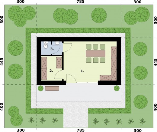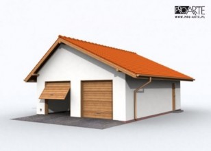 Budynek gospodarczy, wolnostojący. Projekt składa się z części architektonicznej, konstrukcyjnej i wewnętrznej instalacji elektrycznej. W projekcie załączone są podstawowe zestawienie stali, drewna i stolarki okienno-drzwiowej. Do projektu dołączamy bezpłatną zgodę na wprowadzenie zmian, oświadczenie projektantów o wykonaniu projektu zgodnie z obowiązującymi normami i przepisami oraz kserokopie uprawnień projektantów wraz z aktualnym wpisem do izby. W przypadku zamówienia projektu w technologii lekkiej, drewnianej konstrukcji szkieletowej, powierzchnia użytkowa budynku jest o około 7% większa.