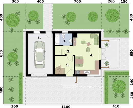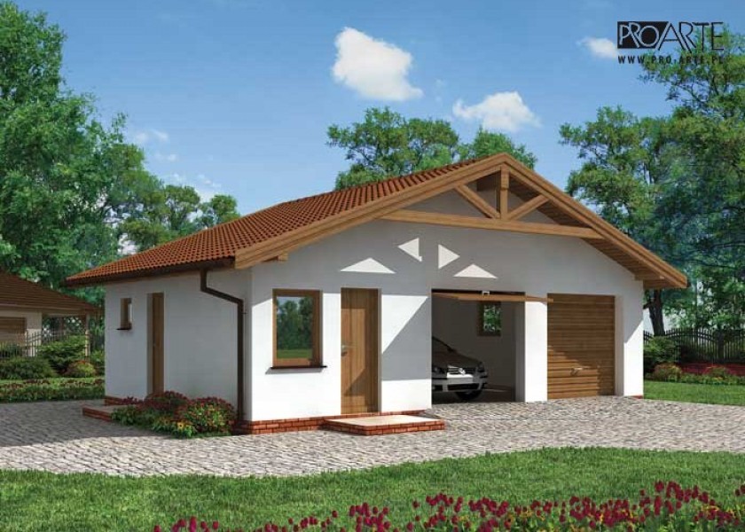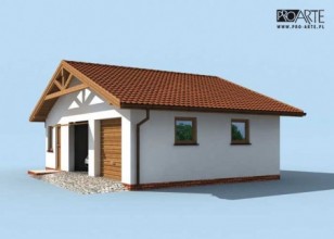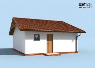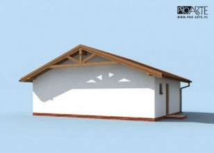 Budynek gospodarczy, wolnostojący. Projekt składa się z części architektonicznej, konstrukcyjnej i wewnętrznej instalacji elektrycznej. W projekcie załączone są podstawowe zestawienie stali, drewna i stolarki okienno-drzwiowej. Do projektu dołączamy bezpłatną zgodę na wprowadzenie zmian, oświadczenie projektantów o wykonaniu projektu zgodnie z obowiązującymi normami i przepisami oraz kserokopie uprawnień projektantów wraz z aktualnym wpisem do izby. W przypadku zamówienia projektu w technologii lekkiej, drewnianej konstrukcji szkieletowej, powierzchnia użytkowa budynku jest o około 7% większa.