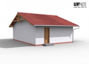 Budynek gospodarczy, wolnostojący. Projekt składa się z części architektonicznej, konstrukcyjnej i wewnętrznej instalacji elektrycznej. W projekcie załączone są podstawowe zestawienie stali, drewna i stolarki okienno-drzwiowej. Do projektu dołączamy bezpłatną zgodę na wprowadzenie zmian, oświadczenie projektantów o wykonaniu projektu zgodnie z obowiązującymi normami i przepisami oraz kserokopie uprawnień projektantów wraz z aktualnym wpisem do izby. W przypadku zamówienia projektu w technologii lekkiej, drewnianej konstrukcji szkieletowej, powierzchnia użytkowa budynku jest o około 7% większa.