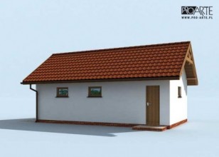 Budynek gospodarczy, wolnostojący. Projekt składa się z części architektonicznej, konstrukcyjnej i wewnętrznej instalacji elektrycznej. W projekcie załączone są podstawowe zestawienie stali, drewna i stolarki okienno-drzwiowej. Do projektu dołączamy bezpłatną zgodę na wprowadzenie zmian, oświadczenie projektantów o wykonaniu projektu zgodnie z obowiązującymi normami i przepisami oraz kserokopie uprawnień projektantów wraz z aktualnym wpisem do izby. W przypadku zamówienia projektu w technologii lekkiej, drewnianej konstrukcji szkieletowej, powierzchnia użytkowa budynku jest o około 7% większa.