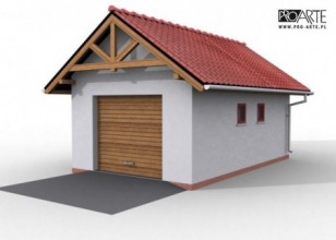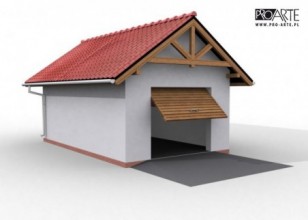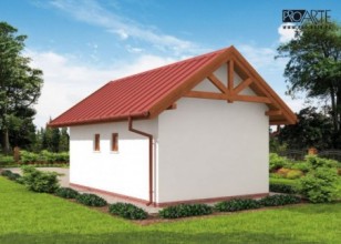 Budynek gospodarczy, wolnostojący. Projekt składa się z części architektonicznej, konstrukcyjnej i wewnętrznej instalacji elektrycznej. W projekcie załączone są podstawowe zestawienie stali, drewna i stolarki okienno-drzwiowej. Do projektu dołączamy bezpłatną zgodę na wprowadzenie zmian, oświadczenie projektantów o wykonaniu projektu zgodnie z obowiązującymi normami i przepisami oraz kserokopie uprawnień projektantów wraz z aktualnym wpisem do izby. W przypadku zamówienia projektu w technologii lekkiej, drewnianej konstrukcji szkieletowej, powierzchnia użytkowa budynku jest o około 7% większa.