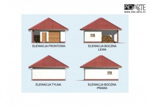 Budynek gospodarczy, wolnostojący. Projekt składa się z części architektonicznej, konstrukcyjnej i wewnętrznej instalacji elektrycznej. W projekcie załączone są podstawowe zestawienie stali, drewna i stolarki okienno-drzwiowej. Do projektu dołączamy bezpłatną zgodę na wprowadzenie zmian, oświadczenie projektantów o wykonaniu projektu zgodnie z obowiązującymi normami i przepisami oraz kserokopie uprawnień projektantów wraz z aktualnym wpisem do izby. W przypadku zamówienia projektu w technologii lekkiej, drewnianej konstrukcji szkieletowej, powierzchnia użytkowa budynku jest o około 7% większa.