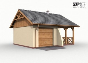 Budynek gospodarczy, wolnostojący. Projekt składa się z części architektonicznej, konstrukcyjnej i wewnętrznej instalacji elektrycznej. W projekcie załączone są podstawowe zestawienie stali, drewna i stolarki okienno-drzwiowej. Do projektu dołączamy bezpłatną zgodę na wprowadzenie zmian, oświadczenie projektantów o wykonaniu projektu zgodnie z obowiązującymi normami i przepisami oraz kserokopie uprawnień projektantów wraz z aktualnym wpisem do izby. W przypadku zamówienia projektu w technologii lekkiej, drewnianej konstrukcji szkieletowej, powierzchnia użytkowa budynku jest o około 7% większa.