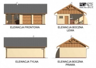 Budynek gospodarczy, wolnostojący. Projekt składa się z części architektonicznej, konstrukcyjnej i wewnętrznej instalacji elektrycznej. W projekcie załączone są podstawowe zestawienie stali, drewna i stolarki okienno-drzwiowej. Do projektu dołączamy bezpłatną zgodę na wprowadzenie zmian, oświadczenie projektantów o wykonaniu projektu zgodnie z obowiązującymi normami i przepisami oraz kserokopie uprawnień projektantów wraz z aktualnym wpisem do izby. W przypadku zamówienia projektu w technologii lekkiej, drewnianej konstrukcji szkieletowej, powierzchnia użytkowa budynku jest o około 7% większa.