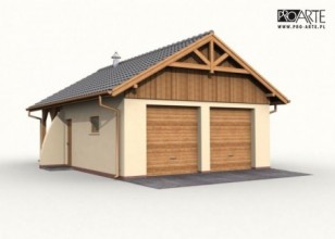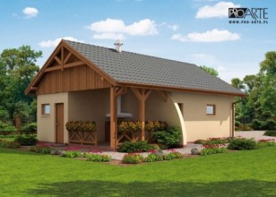 Budynek gospodarczy, wolnostojący. Projekt budynku składa się z 6 egzemplarzy, a w tym 3 tomów części architektoniczno-budowlanej oraz 3 technicznej. W projekcie załączone są podstawowe zestawienie stali, drewna i stolarki okienno-drzwiowej. Do projektu dołączamy bezpłatną zgodę na wprowadzenie zmian, oświadczenie projektantów o wykonaniu projektu zgodnie z obowiązującymi normami i przepisami oraz kserokopie uprawnień projektantów wraz z aktualnym wpisem do izby.  W przypadku zamówienia projektu w technologii lekkiej, drewnianej konstrukcji szkieletowej, powierzchnia użytkowa budynku jest o około 7% większa.