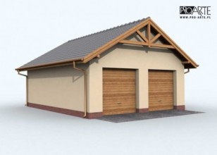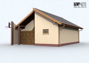 Budynek gospodarczy, wolnostojący. Projekt składa się z części architektonicznej, konstrukcyjnej i wewnętrznej instalacji elektrycznej. W projekcie załączone są podstawowe zestawienie stali, drewna i stolarki okienno-drzwiowej. Do projektu dołączamy bezpłatną zgodę na wprowadzenie zmian, oświadczenie projektantów o wykonaniu projektu zgodnie z obowiązującymi normami i przepisami oraz kserokopie uprawnień projektantów wraz z aktualnym wpisem do izby. W przypadku zamówienia projektu w technologii lekkiej, drewnianej konstrukcji szkieletowej, powierzchnia użytkowa budynku jest o około 7% większa.