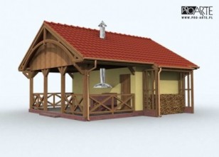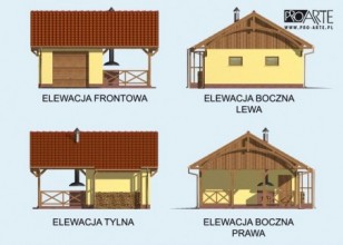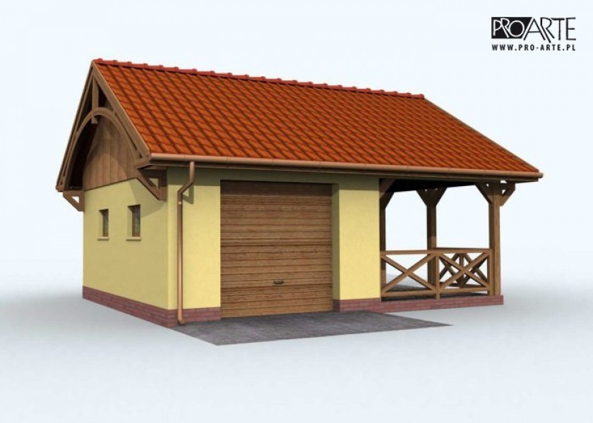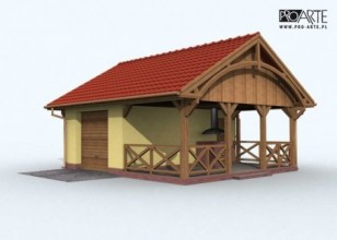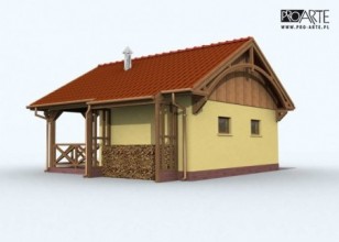 Budynek gospodarczy, wolnostojący. Projekt składa się z części architektonicznej, konstrukcyjnej i wewnętrznej instalacji elektrycznej. W projekcie załączone są podstawowe zestawienie stali, drewna i stolarki okienno-drzwiowej. Do projektu dołączamy bezpłatną zgodę na wprowadzenie zmian, oświadczenie projektantów o wykonaniu projektu zgodnie z obowiązującymi normami i przepisami oraz kserokopie uprawnień projektantów wraz z aktualnym wpisem do izby. W przypadku zamówienia projektu w technologii lekkiej, drewnianej konstrukcji szkieletowej, powierzchnia użytkowa budynku jest o około 7% większa.
