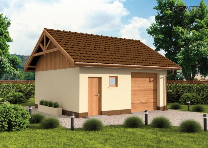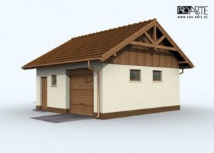 Budynek gospodarczy, wolnostojący. Projekt składa się z części architektonicznej, konstrukcyjnej i wewnętrznej instalacji elektrycznej. W projekcie załączone są podstawowe zestawienie stali, drewna i stolarki okienno-drzwiowej. Do projektu dołączamy bezpłatną zgodę na wprowadzenie zmian, oświadczenie projektantów o wykonaniu projektu zgodnie z obowiązującymi normami i przepisami oraz kserokopie uprawnień projektantów wraz z aktualnym wpisem do izby. W przypadku zamówienia projektu w technologii lekkiej, drewnianej konstrukcji szkieletowej, powierzchnia użytkowa budynku jest o około 7% większa.