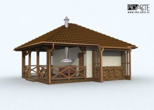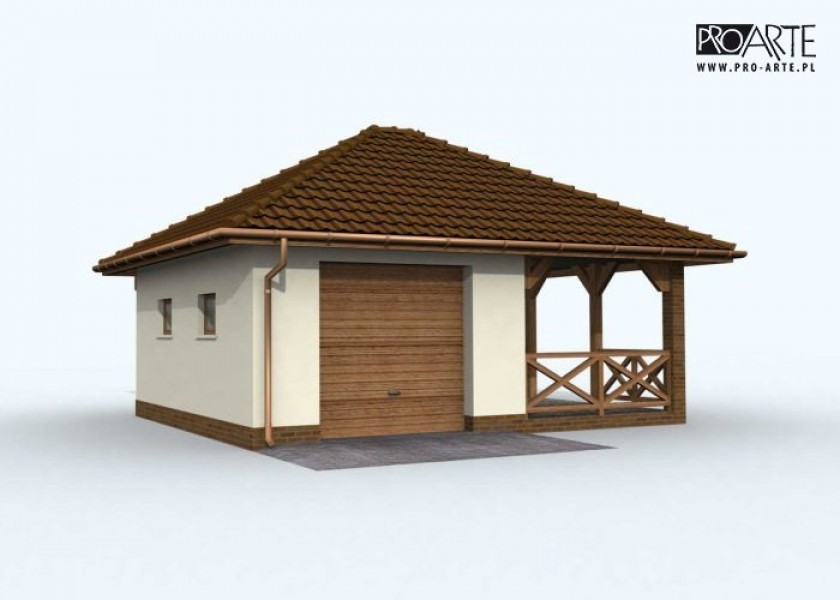 Budynek gospodarczy, wolnostojący. Projekt składa się z części architektonicznej, konstrukcyjnej i wewnętrznej instalacji elektrycznej. W projekcie załączone są podstawowe zestawienie stali, drewna i stolarki okienno-drzwiowej. Do projektu dołączamy bezpłatną zgodę na wprowadzenie zmian, oświadczenie projektantów o wykonaniu projektu zgodnie z obowiązującymi normami i przepisami oraz kserokopie uprawnień projektantów wraz z aktualnym wpisem do izby. W przypadku zamówienia projektu w technologii lekkiej, drewnianej konstrukcji szkieletowej, powierzchnia użytkowa budynku jest o około 7% większa.