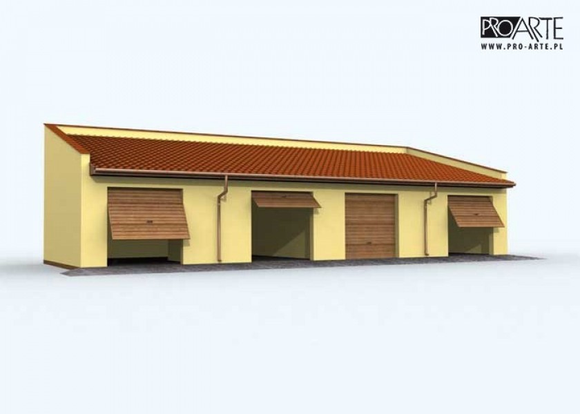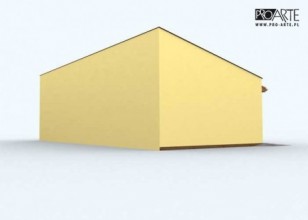 Budynek gospodarczy, wolnostojący. Projekt budynku składa się z 6 egzemplarzy, a w tym 3 tomów części architektoniczno-budowlanejj oraz 3 technicznej. W projekcie załączone są podstawowe zestawienie stali, drewna i stolarki okienno-drzwiowej. Do projektu dołączamy bezpłatną zgodę na wprowadzenie zmian, oświadczenie projektantów o wykonaniu projektu zgodnie z obowiązującymi normami i przepisami oraz kserokopie uprawnień projektantów wraz z aktualnym wpisem do izby.  W przypadku zamówienia projektu w technologii lekkiej, drewnianej konstrukcji szkieletowej, powierzchnia użytkowa budynku jest o około 7% większa.