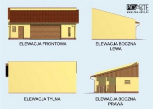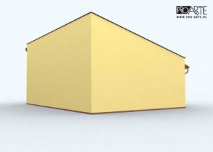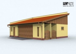 Budynek gospodarczy, wolnostojący. Projekt składa się z części architektonicznej, konstrukcyjnej i wewnętrznej instalacji elektrycznej. W projekcie załączone są podstawowe zestawienie stali, drewna i stolarki okienno-drzwiowej. Do projektu dołączamy bezpłatną zgodę na wprowadzenie zmian, oświadczenie projektantów o wykonaniu projektu zgodnie z obowiązującymi normami i przepisami oraz kserokopie uprawnień projektantów wraz z aktualnym wpisem do izby. W przypadku zamówienia projektu w technologii lekkiej, drewnianej konstrukcji szkieletowej, powierzchnia użytkowa budynku jest o około 7% większa.