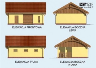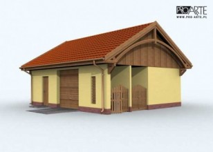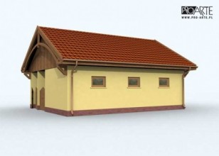 Budynek gospodarczy, wolnostojący. Projekt składa się z części architektonicznej, konstrukcyjnej i wewnętrznej instalacji elektrycznej. W projekcie załączone są podstawowe zestawienie stali, drewna i stolarki okienno-drzwiowej. Do projektu dołączamy bezpłatną zgodę na wprowadzenie zmian, oświadczenie projektantów o wykonaniu projektu zgodnie z obowiązującymi normami i przepisami oraz kserokopie uprawnień projektantów wraz z aktualnym wpisem do izby. W przypadku zamówienia projektu w technologii lekkiej, drewnianej konstrukcji szkieletowej, powierzchnia użytkowa budynku jest o około 7% większa.