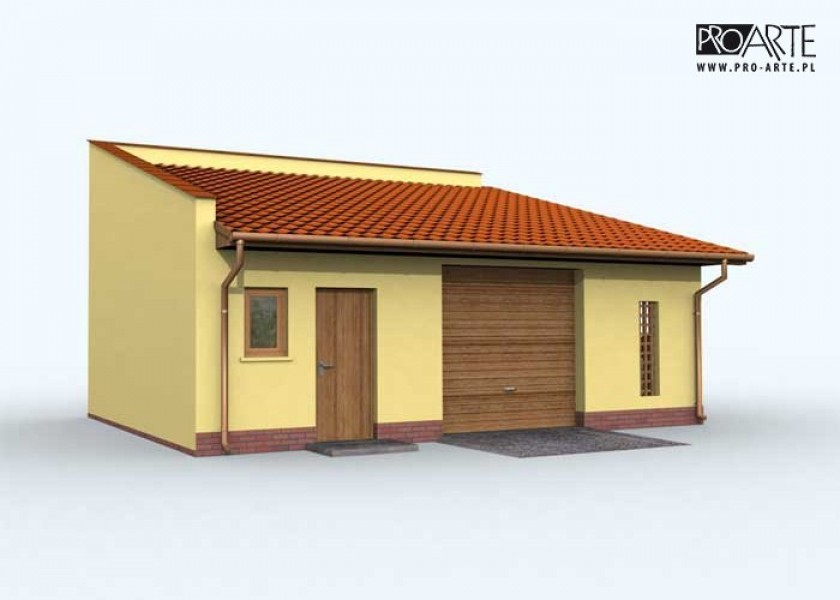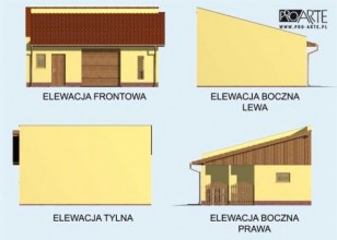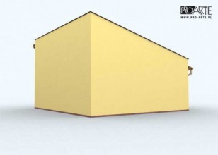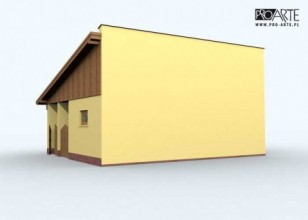 Budynek gospodarczy, wolnostojący. Projekt składa się z części architektonicznej, konstrukcyjnej i wewnętrznej instalacji elektrycznej. W projekcie załączone są podstawowe zestawienie stali, drewna i stolarki okienno-drzwiowej. Do projektu dołączamy bezpłatną zgodę na wprowadzenie zmian, oświadczenie projektantów o wykonaniu projektu zgodnie z obowiązującymi normami i przepisami oraz kserokopie uprawnień projektantów wraz z aktualnym wpisem do izby. W przypadku zamówienia projektu w technologii lekkiej, drewnianej konstrukcji szkieletowej, powierzchnia użytkowa budynku jest o około 7% większa.