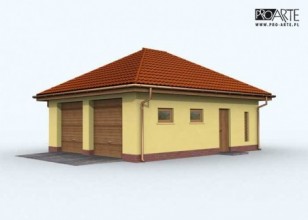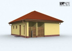 Budynek gospodarczy, wolnostojący. Projekt składa się z części architektonicznej, konstrukcyjnej i wewnętrznej instalacji elektrycznej. W projekcie załączone są podstawowe zestawienie stali, drewna i stolarki okienno-drzwiowej. Do projektu dołączamy bezpłatną zgodę na wprowadzenie zmian, oświadczenie projektantów o wykonaniu projektu zgodnie z obowiązującymi normami i przepisami oraz kserokopie uprawnień projektantów wraz z aktualnym wpisem do izby. W przypadku zamówienia projektu w technologii lekkiej, drewnianej konstrukcji szkieletowej, powierzchnia użytkowa budynku jest o około 7% większa.