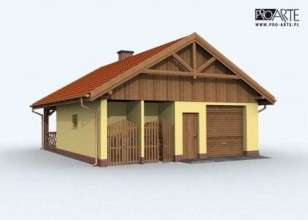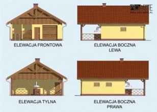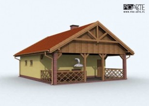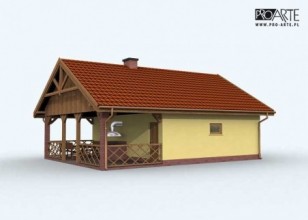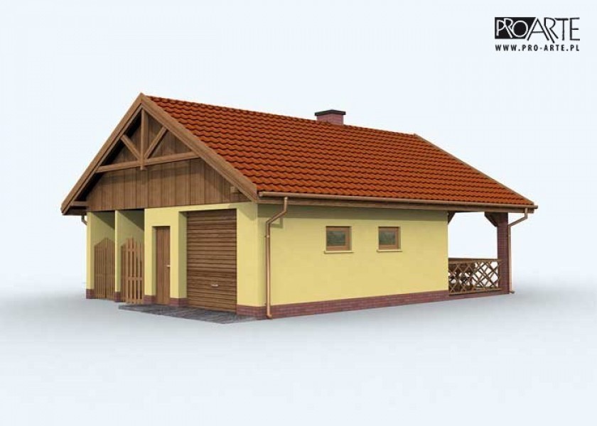Budynek gospodarczy, wolnostojący. Projekt składa się z części architektonicznej, konstrukcyjnej i wewnętrznej instalacji elektrycznej. W projekcie załączone są podstawowe zestawienie stali, drewna i stolarki okienno-drzwiowej. Do projektu dołączamy bezpłatną zgodę na wprowadzenie zmian, oświadczenie projektantów o wykonaniu projektu zgodnie z obowiązującymi normami i przepisami oraz kserokopie uprawnień projektantów wraz z aktualnym wpisem do izby. W przypadku zamówienia projektu w technologii lekkiej, drewnianej konstrukcji szkieletowej, powierzchnia użytkowa budynku jest o około 7% większa.