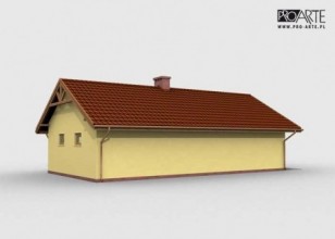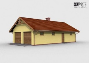 Budynek gospodarczy, wolnostojący. Projekt składa się z części architektonicznej, konstrukcyjnej i wewnętrznej instalacji elektrycznej. W projekcie załączone są podstawowe zestawienie stali, drewna i stolarki okienno-drzwiowej. Do projektu dołączamy bezpłatną zgodę na wprowadzenie zmian, oświadczenie projektantów o wykonaniu projektu zgodnie z obowiązującymi normami i przepisami oraz kserokopie uprawnień projektantów wraz z aktualnym wpisem do izby. W przypadku zamówienia projektu w technologii lekkiej, drewnianej konstrukcji szkieletowej, powierzchnia użytkowa budynku jest o około 7% większa.