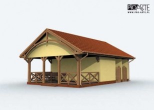 Budynek gospodarczy, wolnostojący. Projekt składa się z części architektonicznej, konstrukcyjnej i wewnętrznej instalacji elektrycznej. W projekcie załączone są podstawowe zestawienie stali, drewna i stolarki okienno-drzwiowej. Do projektu dołączamy bezpłatną zgodę na wprowadzenie zmian, oświadczenie projektantów o wykonaniu projektu zgodnie z obowiązującymi normami i przepisami oraz kserokopie uprawnień projektantów wraz z aktualnym wpisem do izby. W przypadku zamówienia projektu w technologii lekkiej, drewnianej konstrukcji szkieletowej, powierzchnia użytkowa budynku jest o około 7% większa.