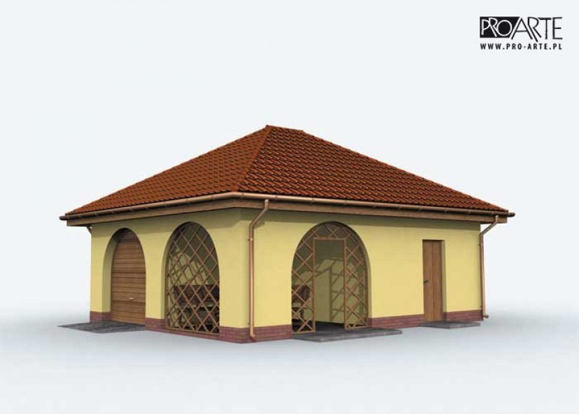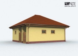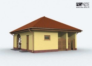 Budynek gospodarczy, wolnostojący. Projekt składa się z części architektonicznej, konstrukcyjnej i wewnętrznej instalacji elektrycznej. W projekcie załączone są podstawowe zestawienie stali, drewna i stolarki okienno-drzwiowej. Do projektu dołączamy bezpłatną zgodę na wprowadzenie zmian, oświadczenie projektantów o wykonaniu projektu zgodnie z obowiązującymi normami i przepisami oraz kserokopie uprawnień projektantów wraz z aktualnym wpisem do izby. W przypadku zamówienia projektu w technologii lekkiej, drewnianej konstrukcji szkieletowej, powierzchnia użytkowa budynku jest o około 7% większa.