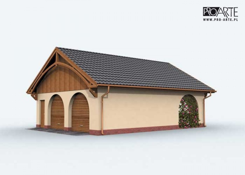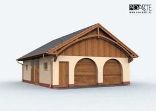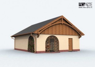 Budynek gospodarczy, wolnostojący. Projekt składa się z części architektonicznej, konstrukcyjnej i wewnętrznej instalacji elektrycznej. W projekcie załączone są podstawowe zestawienie stali, drewna i stolarki okienno-drzwiowej. Do projektu dołączamy bezpłatną zgodę na wprowadzenie zmian, oświadczenie projektantów o wykonaniu projektu zgodnie z obowiązującymi normami i przepisami oraz kserokopie uprawnień projektantów wraz z aktualnym wpisem do izby. W przypadku zamówienia projektu w technologii lekkiej, drewnianej konstrukcji szkieletowej, powierzchnia użytkowa budynku jest o około 7% większa.