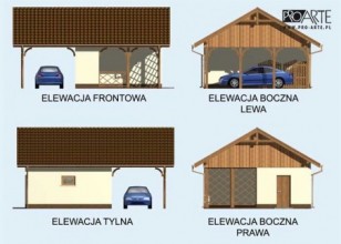 Budynek gospodarczy, wolnostojący. Projekt składa się z części architektonicznej, konstrukcyjnej i wewnętrznej instalacji elektrycznej. W projekcie załączone są podstawowe zestawienie stali, drewna i stolarki okienno-drzwiowej. Do projektu dołączamy bezpłatną zgodę na wprowadzenie zmian, oświadczenie projektantów o wykonaniu projektu zgodnie z obowiązującymi normami i przepisami oraz kserokopie uprawnień projektantów wraz z aktualnym wpisem do izby. W przypadku zamówienia projektu w technologii lekkiej, drewnianej konstrukcji szkieletowej, powierzchnia użytkowa budynku jest o około 7% większa.