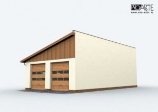 Budynek gospodarczy, wolnostojący. Projekt składa się z części architektonicznej, konstrukcyjnej i wewnętrznej instalacji elektrycznej. W projekcie załączone są podstawowe zestawienie stali, drewna i stolarki okienno-drzwiowej. Do projektu dołączamy bezpłatną zgodę na wprowadzenie zmian, oświadczenie projektantów o wykonaniu projektu zgodnie z obowiązującymi normami i przepisami oraz kserokopie uprawnień projektantów wraz z aktualnym wpisem do izby. W przypadku zamówienia projektu w technologii lekkiej, drewnianej konstrukcji szkieletowej, powierzchnia użytkowa budynku jest o około 7% większa.