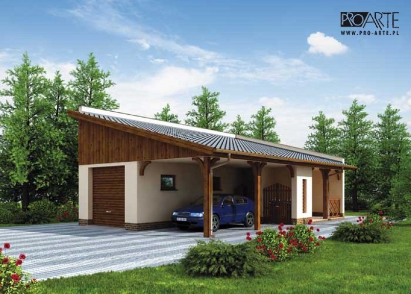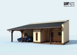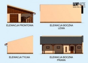 Budynek gospodarczy, wolnostojący. Projekt składa się z części architektonicznej, konstrukcyjnej i wewnętrznej instalacji elektrycznej. W projekcie załączone są podstawowe zestawienie stali, drewna i stolarki okienno-drzwiowej. Do projektu dołączamy bezpłatną zgodę na wprowadzenie zmian, oświadczenie projektantów o wykonaniu projektu zgodnie z obowiązującymi normami i przepisami oraz kserokopie uprawnień projektantów wraz z aktualnym wpisem do izby. W przypadku zamówienia projektu w technologii lekkiej, drewnianej konstrukcji szkieletowej, powierzchnia użytkowa budynku jest o około 7% większa.