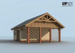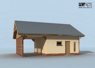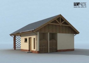 Budynek gospodarczy, wolnostojący. Projekt budynku składa się z 6 egzemplarzy, a w tym 3 tomów części architektoniczno-budowlanej oraz 3 technicznej. W projekcie załączone są podstawowe zestawienie stali, drewna i stolarki okienno-drzwiowej. Do projektu dołączamy bezpłatną zgodę na wprowadzenie zmian, oświadczenie projektantów o wykonaniu projektu zgodnie z obowiązującymi normami i przepisami oraz kserokopie uprawnień projektantów wraz z aktualnym wpisem do izby.  W przypadku zamówienia projektu w technologii lekkiej, drewnianej konstrukcji szkieletowej, powierzchnia użytkowa budynku jest o około 7% większa.