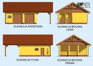 Budynek gospodarczy, wolnostojący. Projekt składa się z części architektonicznej, konstrukcyjnej i wewnętrznej instalacji elektrycznej. W projekcie załączone są podstawowe zestawienie stali, drewna i stolarki okienno-drzwiowej. Do projektu dołączamy bezpłatną zgodę na wprowadzenie zmian, oświadczenie projektantów o wykonaniu projektu zgodnie z obowiązującymi normami i przepisami oraz kserokopie uprawnień projektantów wraz z aktualnym wpisem do izby. W przypadku zamówienia projektu w technologii lekkiej, drewnianej konstrukcji szkieletowej, powierzchnia użytkowa budynku jest o około 7% większa.