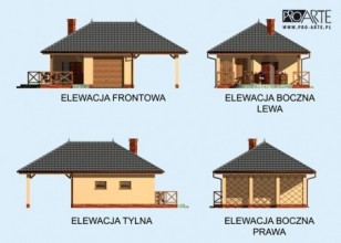 Budynek gospodarczy, wolnostojący. Projekt składa się z części architektonicznej, konstrukcyjnej i wewnętrznej instalacji elektrycznej. W projekcie załączone są podstawowe zestawienie stali, drewna i stolarki okienno-drzwiowej. Do projektu dołączamy bezpłatną zgodę na wprowadzenie zmian, oświadczenie projektantów o wykonaniu projektu zgodnie z obowiązującymi normami i przepisami oraz kserokopie uprawnień projektantów wraz z aktualnym wpisem do izby. W przypadku zamówienia projektu w technologii lekkiej, drewnianej konstrukcji szkieletowej, powierzchnia użytkowa budynku jest o około 7% większa.