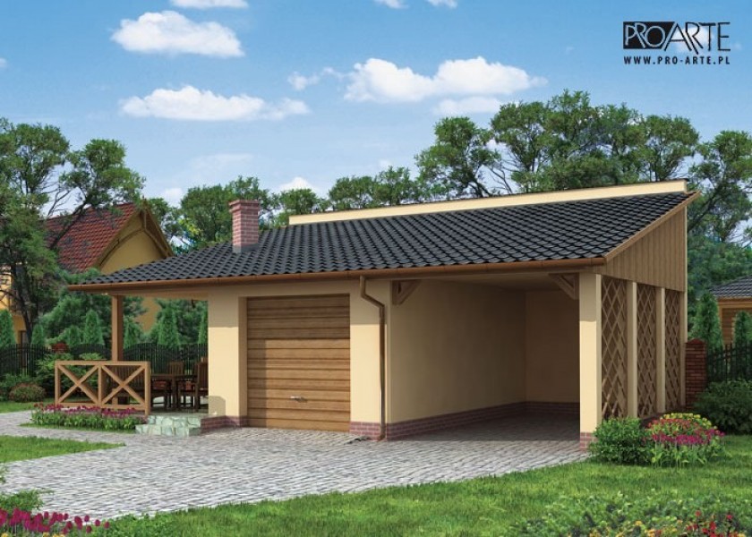Budynek gospodarczy, wolnostojący. Projekt składa się z części architektonicznej, konstrukcyjnej i wewnętrznej instalacji elektrycznej. W projekcie załączone są podstawowe zestawienie stali, drewna i stolarki okienno-drzwiowej. Do projektu dołączamy bezpłatną zgodę na wprowadzenie zmian, oświadczenie projektantów o wykonaniu projektu zgodnie z obowiązującymi normami i przepisami oraz kserokopie uprawnień projektantów wraz z aktualnym wpisem do izby. W przypadku zamówienia projektu w technologii lekkiej, drewnianej konstrukcji szkieletowej, powierzchnia użytkowa budynku jest o około 7% większa.
