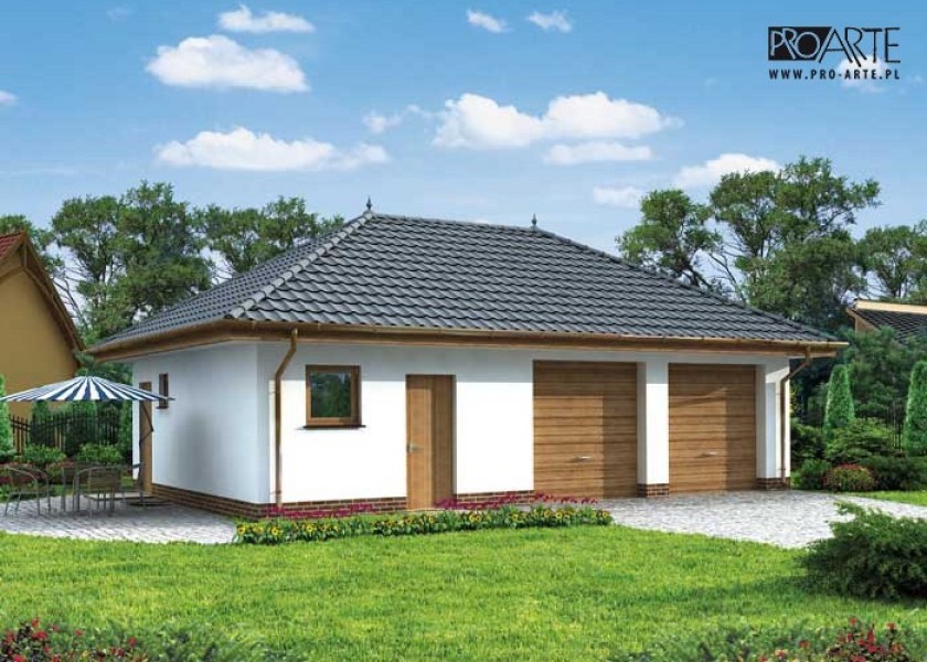 Budynek gospodarczy, wolnostojący. Projekt składa się z części architektonicznej, konstrukcyjnej i wewnętrznej instalacji elektrycznej. W projekcie załączone są podstawowe zestawienie stali, drewna i stolarki okienno-drzwiowej. Do projektu dołączamy bezpłatną zgodę na wprowadzenie zmian, oświadczenie projektantów o wykonaniu projektu zgodnie z obowiązującymi normami i przepisami oraz kserokopie uprawnień projektantów wraz z aktualnym wpisem do izby. W przypadku zamówienia projektu w technologii lekkiej, drewnianej konstrukcji szkieletowej, powierzchnia użytkowa budynku jest o około 7% większa.