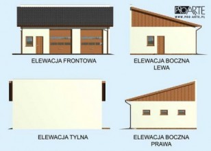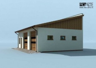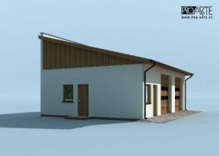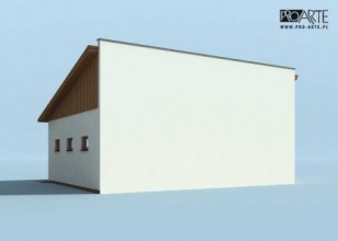Budynek gospodarczy, wolnostojący. Projekt składa się z części architektonicznej, konstrukcyjnej i wewnętrznej instalacji elektrycznej. W projekcie załączone są podstawowe zestawienie stali, drewna i stolarki okienno-drzwiowej. Do projektu dołączamy bezpłatną zgodę na wprowadzenie zmian, oświadczenie projektantów o wykonaniu projektu zgodnie z obowiązującymi normami i przepisami oraz kserokopie uprawnień projektantów wraz z aktualnym wpisem do izby. W przypadku zamówienia projektu w technologii lekkiej, drewnianej konstrukcji szkieletowej, powierzchnia użytkowa budynku jest o około 7% większa.
